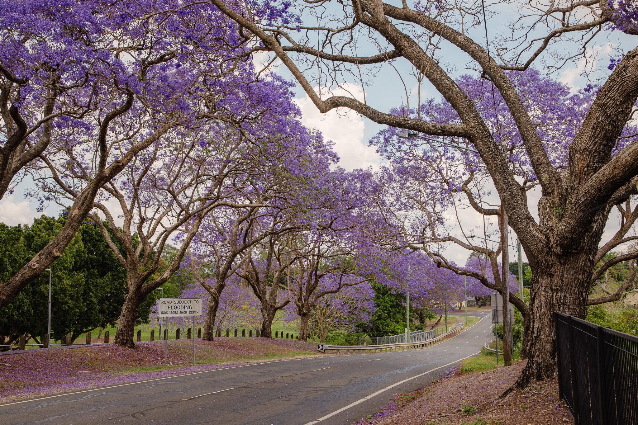 Historic jacaranda trees along Brisbane Terrace are in bloom and Evan Marginson Park is lined with purple in clear signs the Goodna Jacaranda Festival is just around the corner.