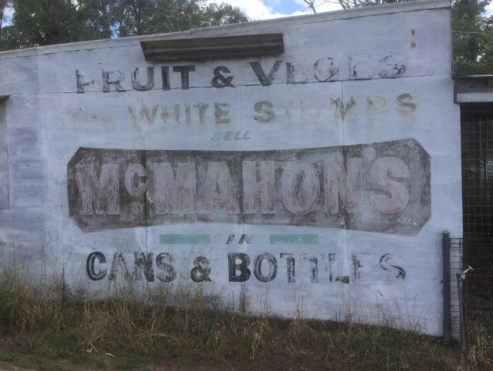 He had a McMahons Soft Drinks sign painted onto the whole wall on the side of the shop.
